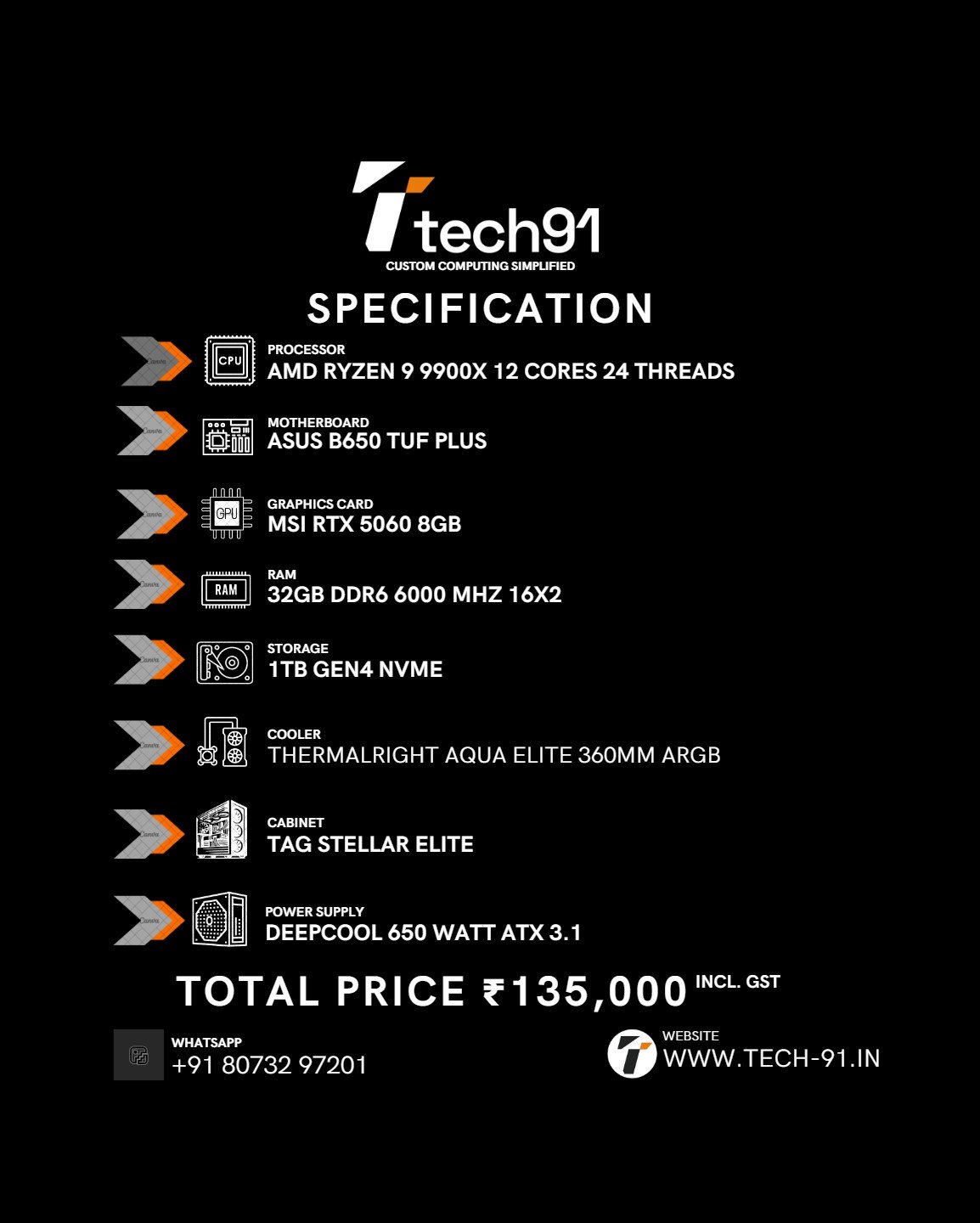 • Cabinet: TAG Stellar Elite — spacious ATX chassis with airflow optimization and clean cable management
